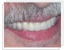 - Après 6 mois la mise en place de deux bridges complets de 12 éléments céramiques chacun fixées sur les implants.
